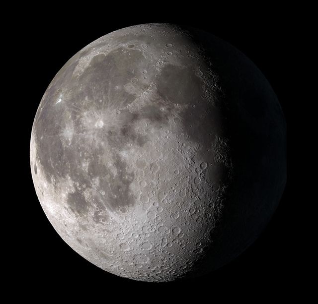 Position in space: the Moon has gone three quarters of the way on its orbit around Earth