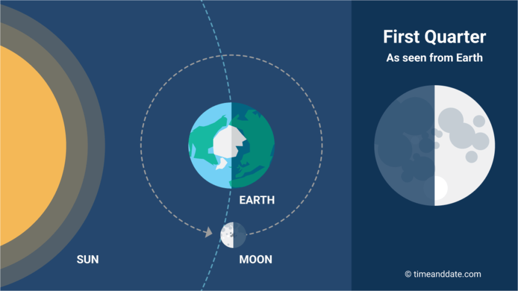 The ocean tides on Earth are mostly generated by the Moon’s gravitational pull. At the First and Third Quarter, the Moon and Sun pull in different directions, producing the smallest difference between high and low tide, known as neaps or neap tide.