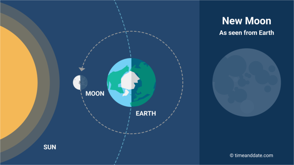 A lunar month starts at the invisible New Moon and lasts through all the Moon phases until the next New Moon.
