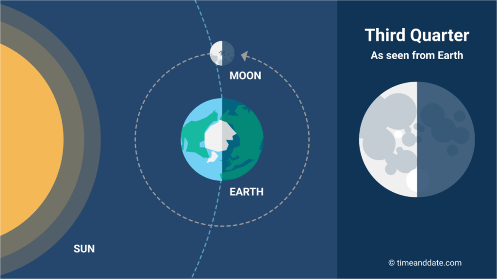 The Third Quarter Moon begins the last quarter of the lunar cycle.