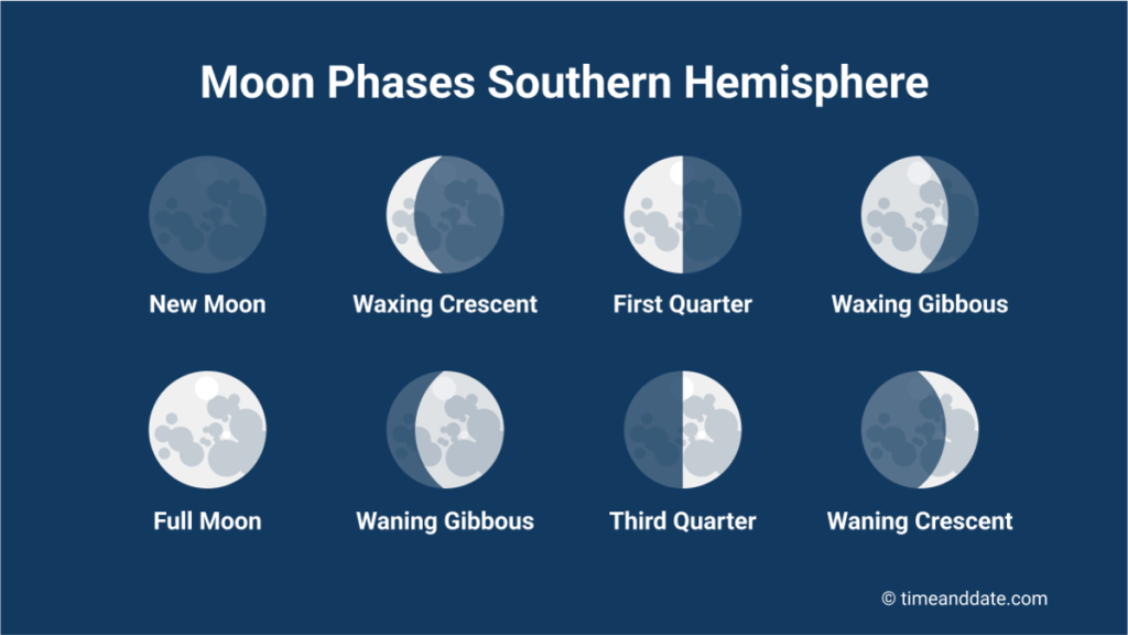 Half of the Moon’s surface is always illuminated by sunlight. As the Moon orbits Earth, it changes how much of the lit-up side we can see. This is known as a Moon phase. Primary Moon phases happen at a specific moment in time, while the time between these moments are intermediate Moon phases.