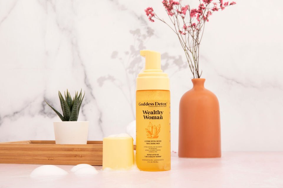 Wealthy Woman Citrine Crystal Infused Yoni & Vaginal Wash is a luxury yoni wash attuned with the frequency of abundance.