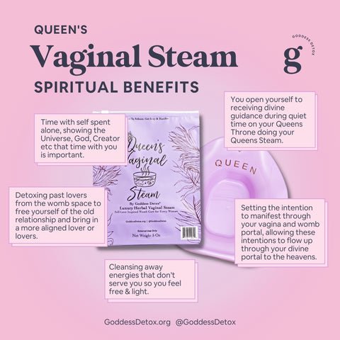 I first used the Goddess Detox Pearls… I had never had such an experience as this IN MY LIFE! I also started using the Rose Quartz herbal Pu$$y Wash, it smells so nice and has a cooling effect as well! And now I do monthly Vaginal steaming, not only to connect back with my womb and feminine nature, but I use these experiences for physical, mental, emotional and spiritual reasons! It’s definitely helped rid me of my horrible ex and all the bad juju he brought to my life!