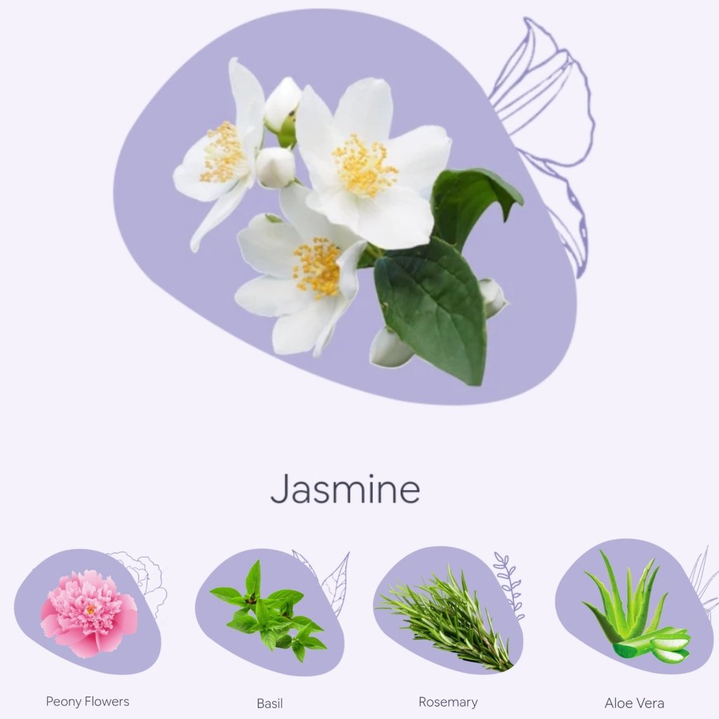 Ingredients: Jasmine, Basil, Rosemary, and Aloe Vera Waters, Peony Flowers, Witch Hazel, Gotu Kola, a Touch of Sweet Amber Fragrance and naturally derived alcohol and sugar.
