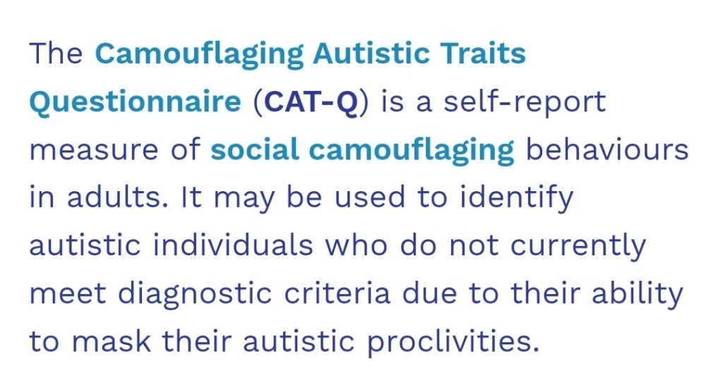 Camouflaging Autistic Traits Questionnaire (CAT-Q) https://embrace-autism.com/cat-q/